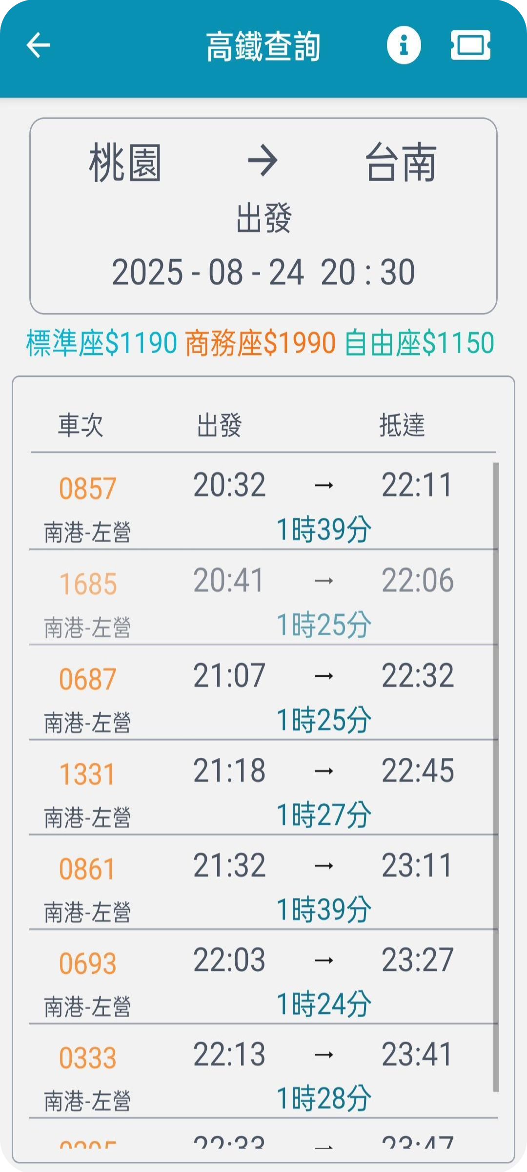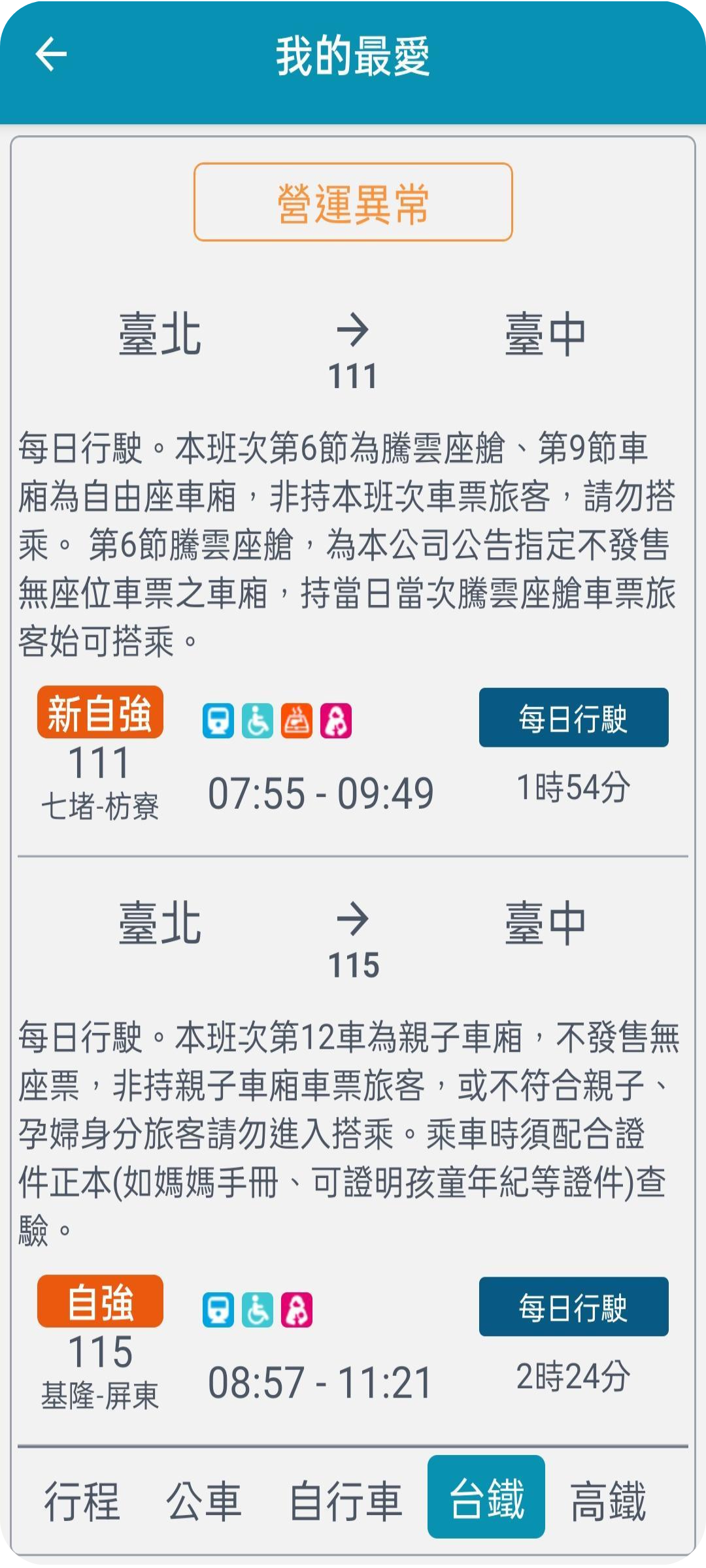 台鐵、高鐵時刻表還有公車客運即時動態,讓您不再錯過重要行程。