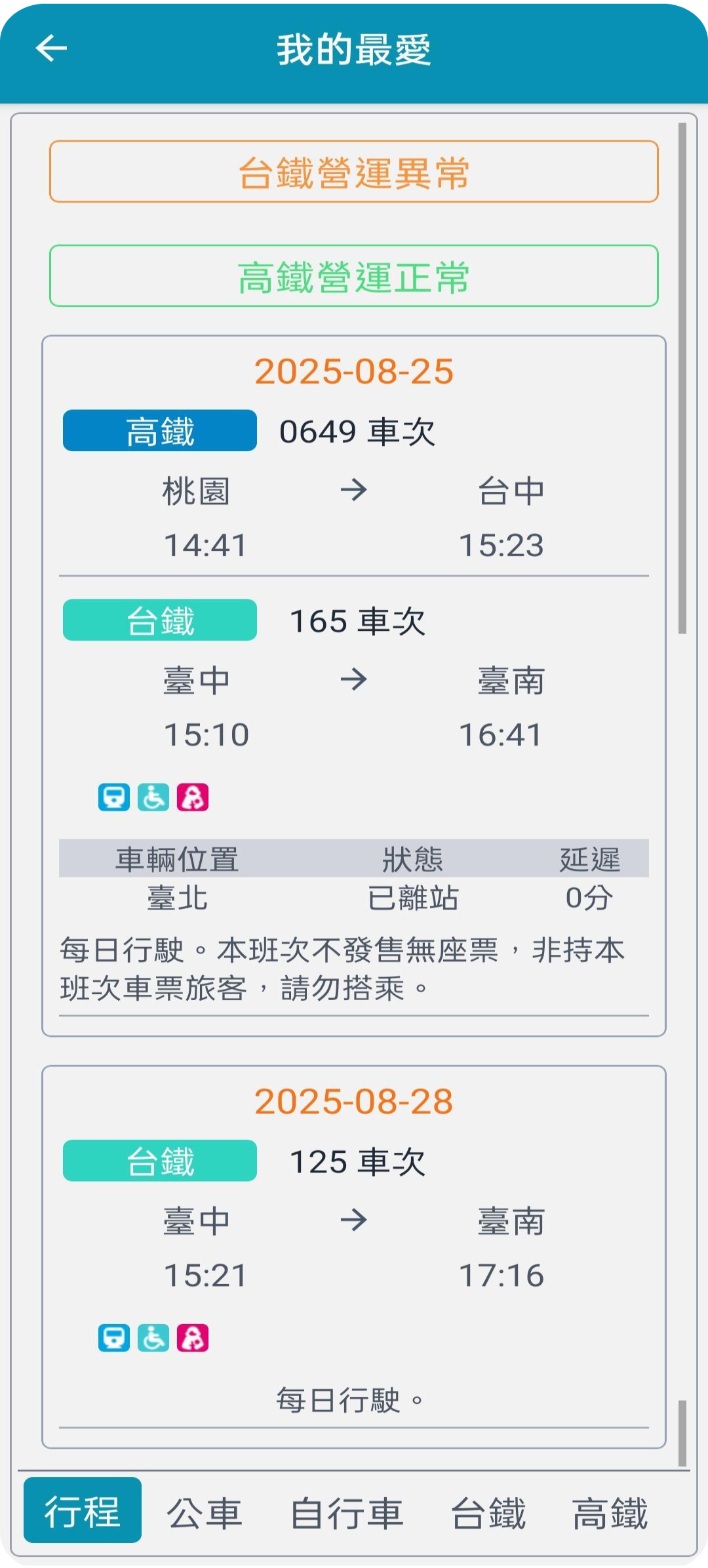 台鐵、高鐵時刻表還有公車客運即時動態,讓您不再錯過重要行程。